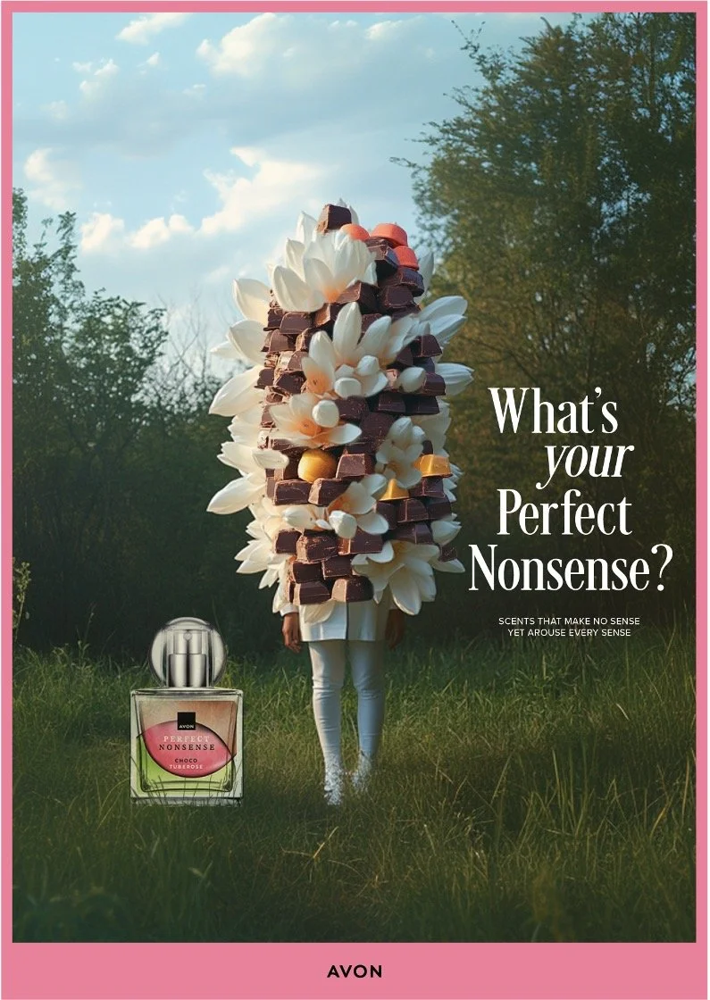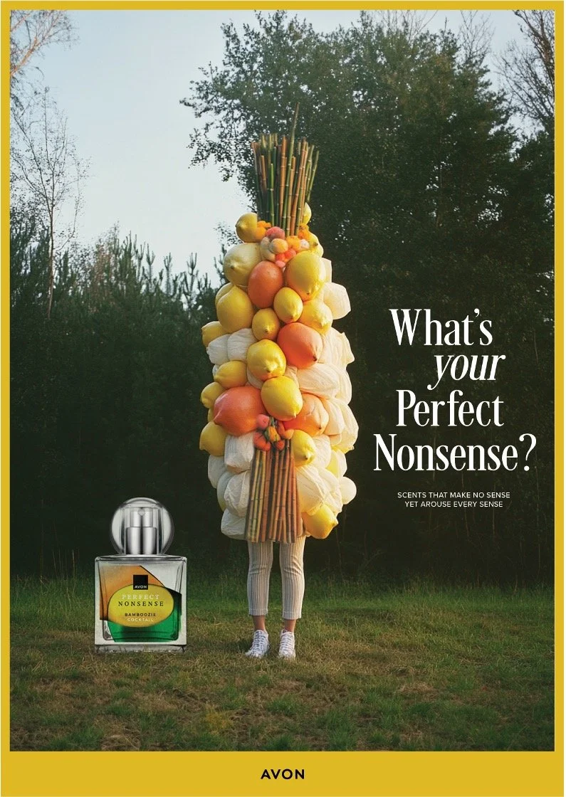 Scan the QR code on the back of the print for a voucher to purchase your chosen Perfect Nonsense scent at the online Avon store.